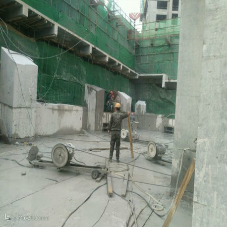 線鋸 靜態切割是由液壓馬達驅動金剛石線繞被切割物體高速行進并磨削至完成切割工作。由于金剛石顆粒用作研磨材料,它可以切割和分離鋼筋混凝土等堅硬物體。