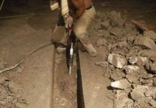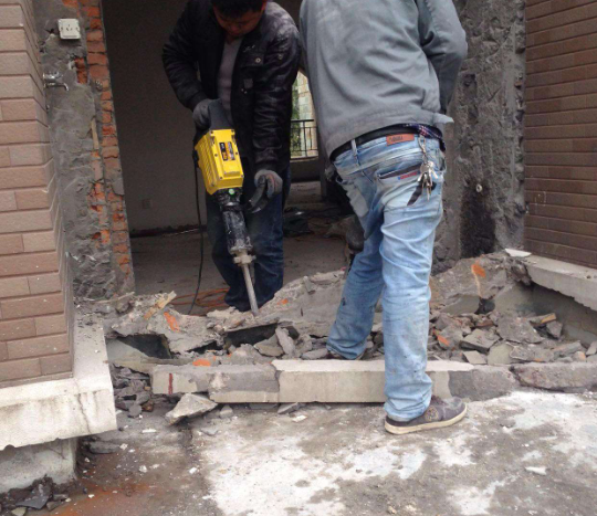 2.我們也可以用電錘,類似于沖擊鉆。使用這些工具,我們可以很快敲出水泥地面。