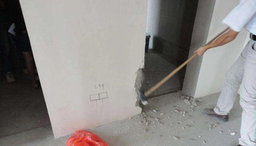 2.砸墻高度超過(guò)2.8米時(shí),應(yīng)先在頂部開(kāi)一個(gè)口,從上面砸下去,這樣做相對(duì)安全。