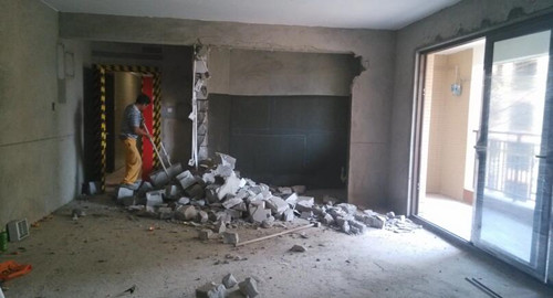 3.開(kāi)門(mén)或砸左邊或右邊的一部分墻時(shí),留下墻的寬度,或用手持切割機(jī)將墻的兩邊切開(kāi),再用大錘將磚砸碎。